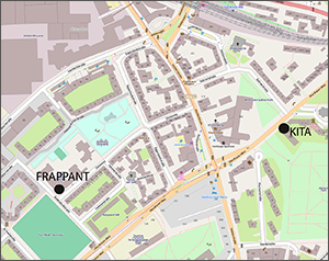 Die Kinder bringen Werbematerial in Geschäfte, Kitas und zu anderen Multiplikatoren. Die aufzusuchenden Orte werden mit den Kindern der Forschergruppe abgestimmt und vorbereitet worden. Hinterher werden die besuchten Orte als Punkt auf einer Karte festgehalten.
