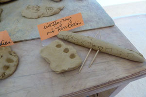 Zum Verweilen lädt auch der kleine Tonofen ein. Hier können wir Apfelscheiben braten. Leckere Scheiben reizen einen zum Probieren.