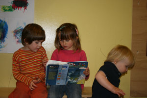 In der Mittagspause sollen die Kinder zur Ruhe kommen können. Eine ErzieherIn liest ihnen vor. Manche Kinder ziehen sich zurück. In dieser Zeit machen wir häufig auch gezielt Angebote.